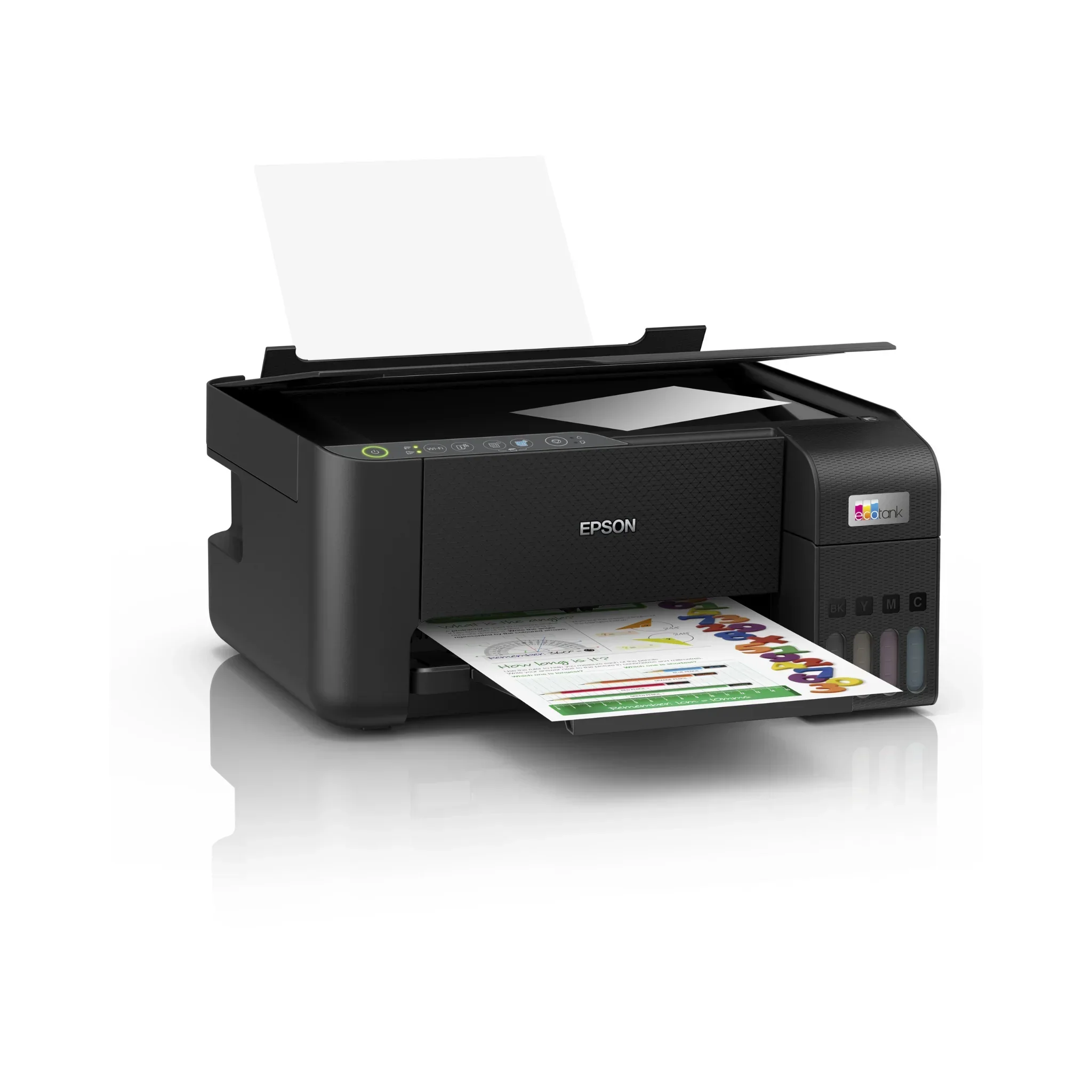 L’Epson L3250 est une imprimante multifonction (Impression, Copie, Numérisation) équipée du système de réservoirs d’encre haute capacité. Fini les cartouches coûteuses : vous rechargez simplement l’encre à l’aide de bouteilles à haut rendement.